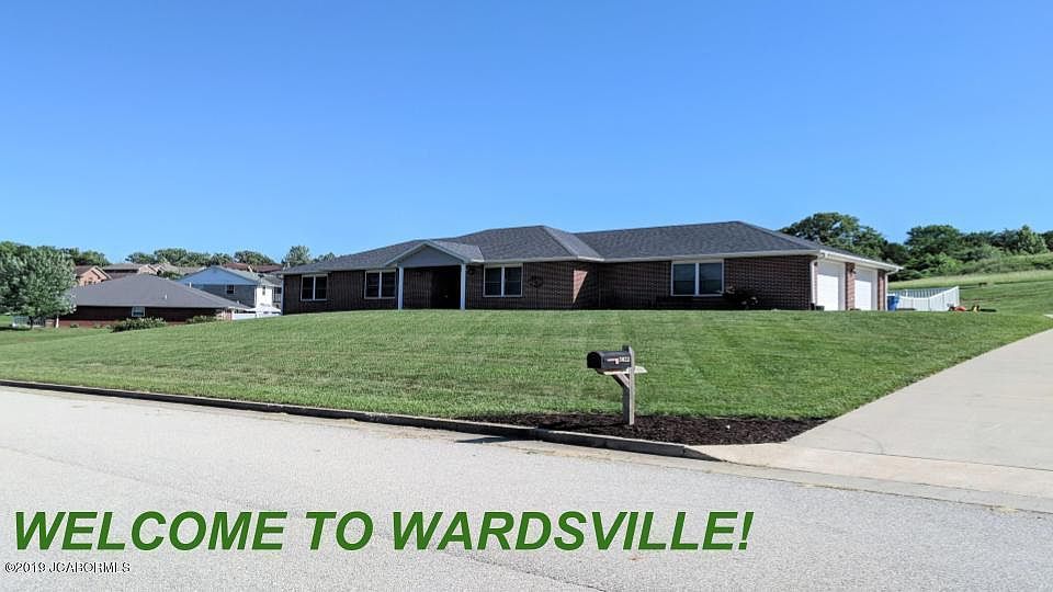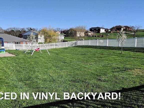 Main level open floor plan living with full walk out basement and three car garage in Blair Oaks school district. Save money on this very low maintenance home. NEW professional landscaping, professionally updated doors and trim, fenced in backyard. NEW refrigerator. Long and Level second driveway to third garage. Basement ready to expand and plumed for third bathroom. Easy living with views of Wardsville farmlands.