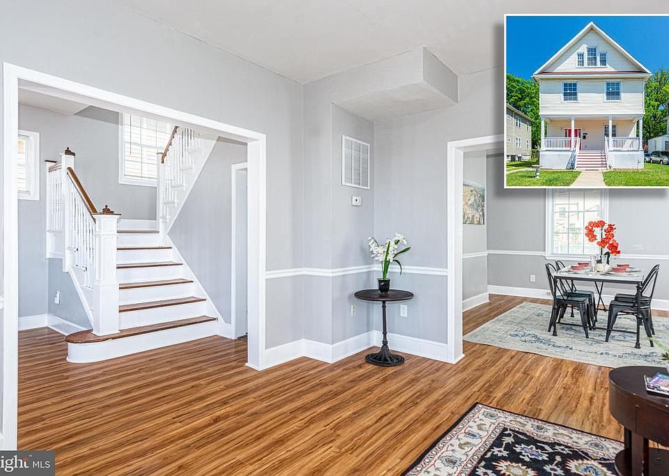 EXPANSIVE RENOVATED COLONIAL WITH 4 FINISHED LEVELS AND A LARGE FENCED YARD! The main level features a spacious living room and separate dining room with wood floors, a Chef's kitchen with granite counters and ss appliances, and a main level half bath. The 2nd level offers a Primary bedroom suite with a half bath and 3 additional bedrooms with a full bath. The finished 3rd level has 2 large bedrooms and a full bath. The basement is fully finished and has a large family room and 2 additional rooms that could be used as an office, exercise room, or additional bedrooms. The large fenced yard and front porch are the perfect places to entertain and parking is not an issue - there is driveway parking for multiple cars!