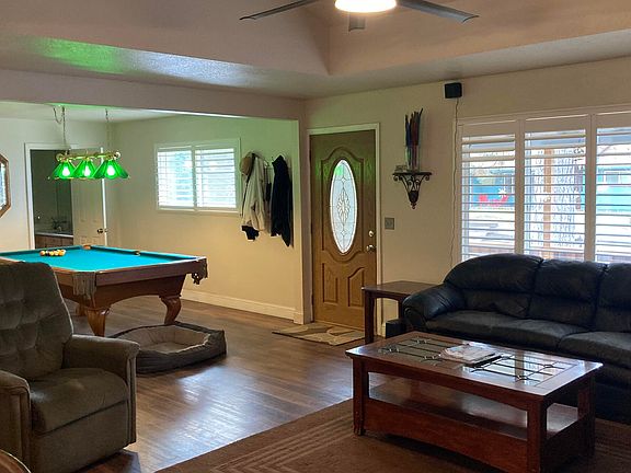 Located just minutes from the four corners. This updated open floor plan offers Shaw laminate flooring, vinyl dual pane windows and ceiling fans throughout. Valted ceiling in living room. Updated bathrooms. The 3rd bedroom has been converted to a game room giving an open feel to this nicely updated home. RV parking, central heat & air, woodstove and a jacuzzi out back. Backyard is landscaped with sprinklers and divided area for the dogs. Washer and dryer included.