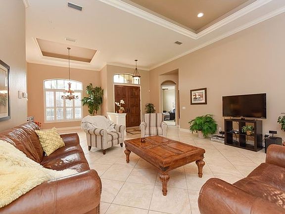 This is a Petz Custom home and is located in Oak Creek one of the most sought after communities in Manatee County. Oak Creek is a warm and appealing community that captures the essence of "French Country" architecture. This home is recognized and associated with impeccable design, quality and finely crafted homes. As you walk through the "Stained Mahogany" wood doors you will immediately notice the large Great Room floor plan with 12' high ceilings, Custom Tray Ceilings, 5-1/4" Crown Moldings and baseboards overlooking the custom pool & spa package while being situated on a private secluded lot with lush landscape. The kitchen has beautiful "Coffee Glazed" wood cabinets and decoratively-edged granite countertops, walk-in pantry, stainless steel appliances, and a large center island with roll-out drawers as well as a large breakfast bar. The outdoor living comes with a huge covered and screened lanai/pool/spa and outdoor kitchen, which makes for a great place to entertain your guest. With this custom designed home you will be amazed at the storage space. This home comes complete with a Built-in intercom and speaker system throughout the home and an "Energy Efficiency" package including Insulated Windows & Sliders, Polymaster Block & Double Ply Radiant Barrier, and a Tankless Water Heater and Recirculating Pump. In this charming and quaint community of only 33 uniquely designed homes centered around a large lake. This home is one of the rare ones. You don't want to miss out!