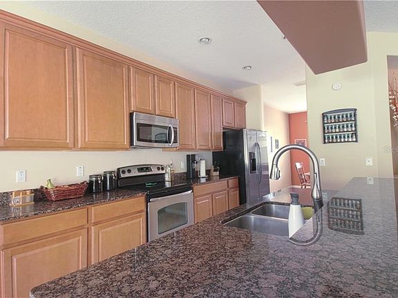 - Interior Features: Ceiling Fans(s), High Ceiling(s), Split Bedroom, Solid Wood Cabinets, Kitchen/Family Room Combo, Stone Counters, Thermostat, Pest Guard System