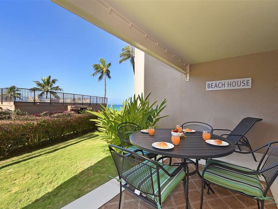 Beautifully remodeled and tastefully furnished year this is an exceptional value for your Maui home or vacation rental. Enjoy the custom finishes and upgrades throughout including the expanded Kitchen and Custom Shower area. The floors are waterproof vinyl throughout, Granite counter tops in the Bathrooms and Kitchen with Cherry Wood Cabinets. There is even an easy opening new lanai door wall conveniently located on ground floor garden area that expands the living experience. Steps to the pool or ocean and close enough to hear nothing but the sound of the Ocean. This Condo exemplifies true Owner pride as not only is it comforting from the minute you walk in but everything you would expect, and more is provided to ensure the ultimate relaxing vacation. There is also additional lanai storage area for all the water toys and Owners closet. The centrally located pool area and large elevated sundeck for use by Owners and Guests is combined with shuffle board, courtyard sitting area and Bar B Que grills. There is direct access to the Ocean as well as kayak and surf board storage. Maintenance fee includes ALL UTILITIES and Electric, common area maintenance, insurance and AOAO property Management, reserves, for a total of $ 912 monthly. This unit is vacant and available to show or preview on short notice.