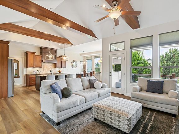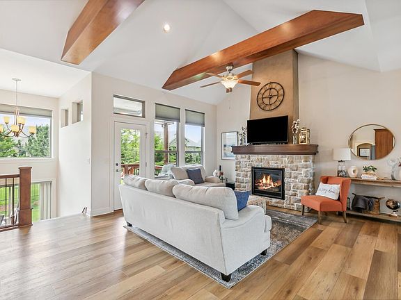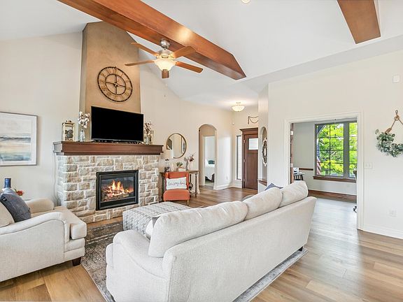This newer 3200+ sqft custom built home by Perfection Builders is truly a display of creativity & full of quality amenities. This home offers 5 bedrooms, 3baths and 3 car garage. The split ranch, open floor plan home is designed so that the living room, kitchen & dining areas are incorporated into one stunning large Great Room that has a 12' vaulted ceiling w/exposed wood beams, natural stone gas fireplace, over sized windows, beautiful hardwood floors and covered deck with composite flooring. The kitchen has custom cabinetry, granite counter tops, & large island. The large master suite has a 5 pcs. en-suite bath that has a soaker tub, separate shower, granite dual vanities, walk-in closet that passes through to the laundry / mud room. Finished view-out basement w/ large rec room, wet bar and 2 large bedrooms that look out onto a fully landscaped yard w/sprinkler system, irrigation well & wrought iron fencing. Home has all new interior paint.