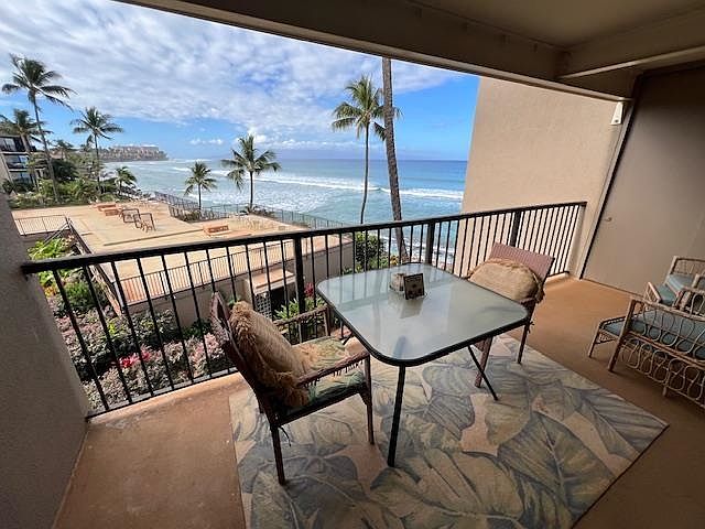 DIRECT OCEAN FRONT. Exceptional value for this big Ocean view condo with year round sunsets and seasonal whale watching from your living room and lanai. Ocean views throughout the unit with the sounds of the surf. Tastefully decorated and fully furnished. Cool trade winds. The floor plan includes a expanded kitchen and remodeled bathroom. Located 3 units back from the ocean. Lanai has large storage for all the water toys and owners closet. Centrally located pool area and large elevated sundeck, shuffleboard, BBQ area, shade pavilions and grass area. Direct access to the ocean. Kayak and surf board storage area located on the ground floor below the unit. Maintenance fee includes all utilities including electricity, cable TV, internet, common area maintenance, insurance and on-site property manager.