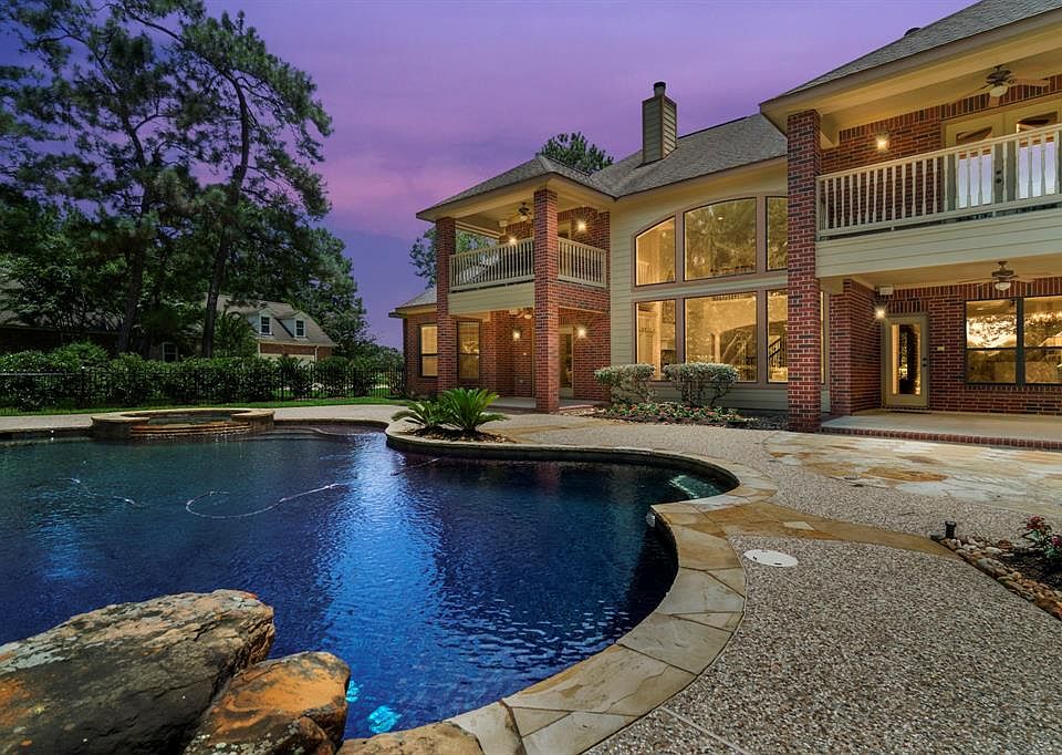 COME EXPERIENCE TRUE WATERFRONT LIVING in the highly acclaimed Benders Landing! This home, built by Caretex Custom Builders, sits on an acre+ with 114 feet of LAKEFRONT & pier. Soaring ceilings, TRAVERTINE & SLATE floors, tray ceilings, built-ins, fireplace with gorgeous tile surround & WALLS OF WINDOWS draw in tons of natural light. GOURMET KITCHEN with DOUBLE OVENS, 2 pantries, STAINLESS appliances + a desk area with built ins. FRIDGE STAYS. Private master retreat with bay window sitting area overlooking the pool and lake. Master bath features separate shower, soaking tub & 2 walk-in closets w/built-ins! Massive game/media room, 3 bedrooms & 2 full baths up. RESORT-STYLE BACKYARD w/POOL, SPA, 2 covered patios & 2 covered balconies. Entire home recently painted & carpet replaced. Zoned to the new Grand Oaks High School. Close to schools, shopping, dining & more. This home is located just minutes from the Grand Parkway with easy access to Hwy 45, IAH, or Houston.