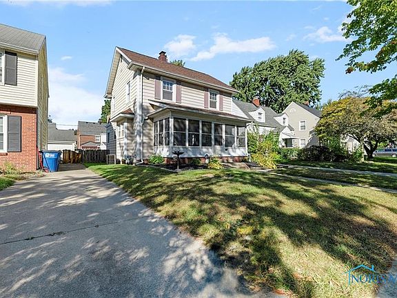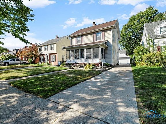 Ultra cute West Toledo home with so many updates! New roof on house and garage in 2024. New kitchen appliances. Updated plumbing in the upstairs bathroom. New windows on the front porch. New garage door and opener. New washer and dryer that will stay for the new owners. Enjoy your morning coffee on the upstairs airing deck with a new door, railing, and new rubber roof. Most yard equipment will stay with the home, and all furniture is also negotiable! You could move right in!