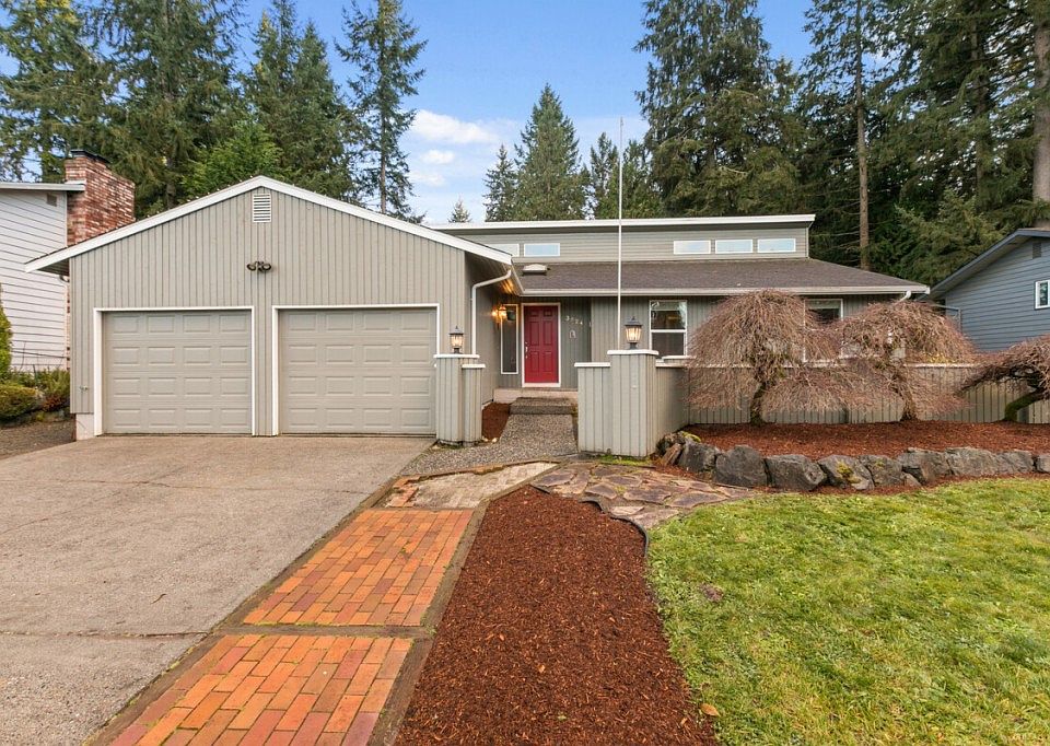 Welcome to the Woodlands community, no HOA. This home features a tastefully remodeled kitchen with newer roof and windows. Architecture exemplifies an open living space with views of a natural greenbelt. Backyard is private and peaceful, ready for your personal touch. Home also boasts a new heat pump and plenty of parking. Basement is very spacious and features ample storage, bedrooms and office.