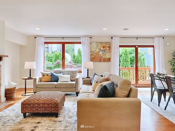 STUNNING, bright and gracious European style home, impeccably maintained and located on a quiet street within walking distance to shops, restaurants, and Gas Works park. Spacious living and dining rooms with French doors to deck overlooking fully fenced and beautifully landscaped backyard. Large chef's kitchen with slab granite counters and ss appliances. Handsomely detailed throughout with teak hardwood floors, wood windows and fresh interior paint. Two high-ceilinged bedrooms and two full bathrooms upstairs. Sunny downstairs bedroom opens onto backyard patio. Attached garage. Extra finished space in attic not included in square footage. Efficient radiant floor heating with mini-split A/C, ceiling fans and tankless on-demand hot water.