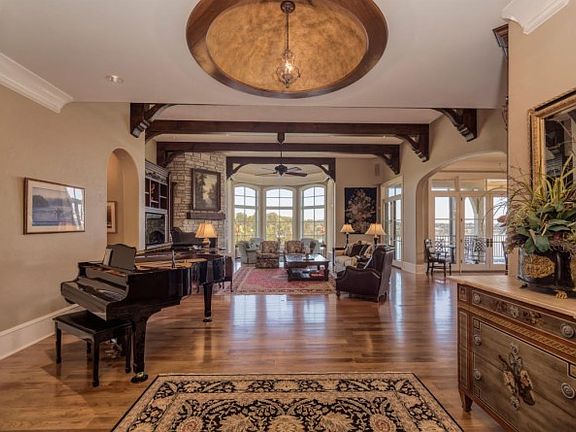 A truly unique estate sited on nearly 4 gently sloping picturesque acres that include 450 feet of shoreline with panoramic views across Lake Loudon. Filled with elegant living spaces, this one-of-a-kind, gated property encompasses some 10000 square feet of living space including four fireplaces, five bedroom suites including an expansive main level master and an upper level VIP suite offering ample space for family and guests. Hardwood flooring is found throughout, providing a warm ambiance that is enhanced by the large windows, which spill light into the interiors. Other features include a gourmet kitchen with top of the line finishes, a large covered porch and stone patios overlooking the manicured grounds making this the perfect home for Summer entertaining. Additional details and