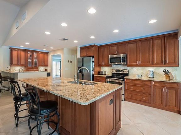 Beautiful home with numerous and significant upgrades located in sought after Country Place with over-sized lots & mature landscaping. Spacious floor plan w/2,715 s.f. under air that flows nicely for any family's lifestyle. Wonderfully updated kitchen open to a large family room w/fireplace, bar area, breakfast nook & lanai. 20" tile on diagonal. A fantastic gathering spot for family activities or weekend entertaining. Beautiful granite counter tops w/wood cabinets & sliding shelves, soft-close drawers, under-mount lighting, stainless appliances, breakfast bar & separate bar area w/sink, refrigerator & wine cooler. Large master bdrm w/beautifully updated master bath & private access to the lanai & hot tub. Remaining bdrms are all very spacious. One bdrm used as an office has custom shelving in large walk-in closet. The upgrades don't stop there. Tastefully updated 1/2 bath. A/C replaced w/17 Seer, 5 ton, 4 zone system & all new duct work in '13. New roof in '16, new deep well irrigation pump in '17, pool pump-'17, Lutron programmable wireless lighting system, new solar heating for pool in '16, & new garage doors. Both interior & exterior paint in '13. Large lanai w/built-in grill. Pool has an auto-filler & was resurfaced prior to this owner. 6 person hot tub less than 3 yrs. old. This home has had the big ticket items addressed. Add finishing touches with 2nd bath vanity & upgrades to some carpeting. Fantastic central location close to good schools, Siesta Key & major shopping. A MUST SEE!