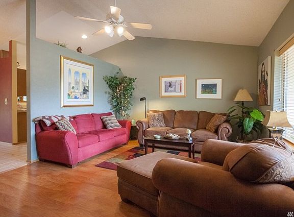 Take sanctuary in your own slice of gardener's-heaven! Enjoy single-level living in a well-cared for home. Open floor plan, comfortable kitchen & dining area, 800sqft deck, and mini-theater w/built-in surround sound make it a great home for entertaining. French doors lead to a private backyard. Sit in the hot tub while listening to birds. Low-traffic street, friendly neighborhood, and trail access a few minutes' walk from the house. Move in ready, furnishings available for purchase. A must-see!
