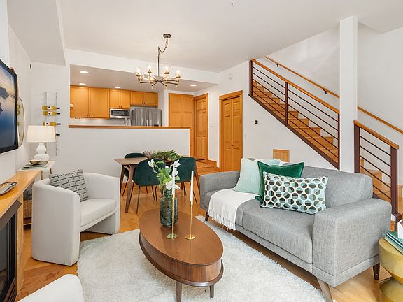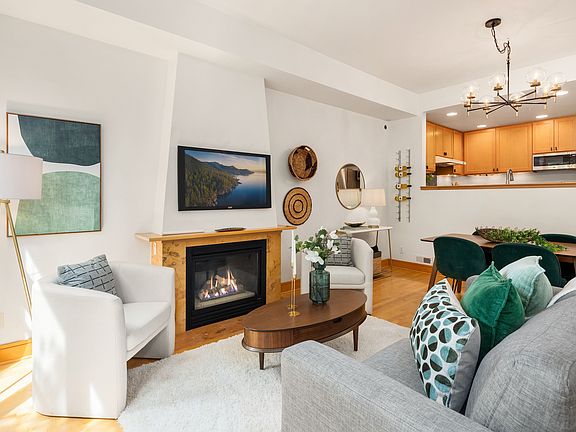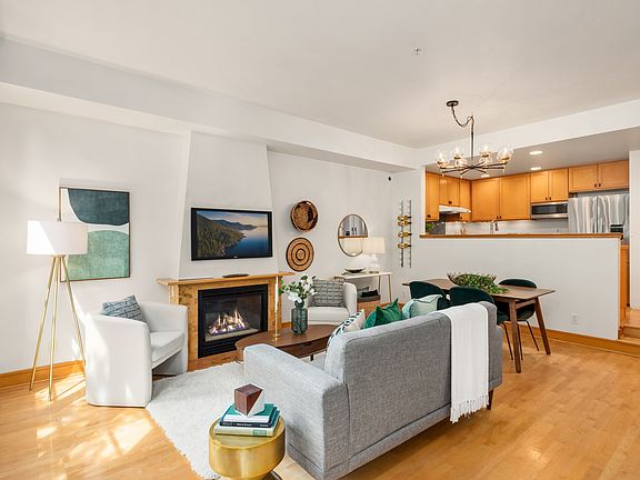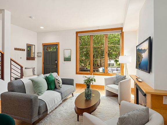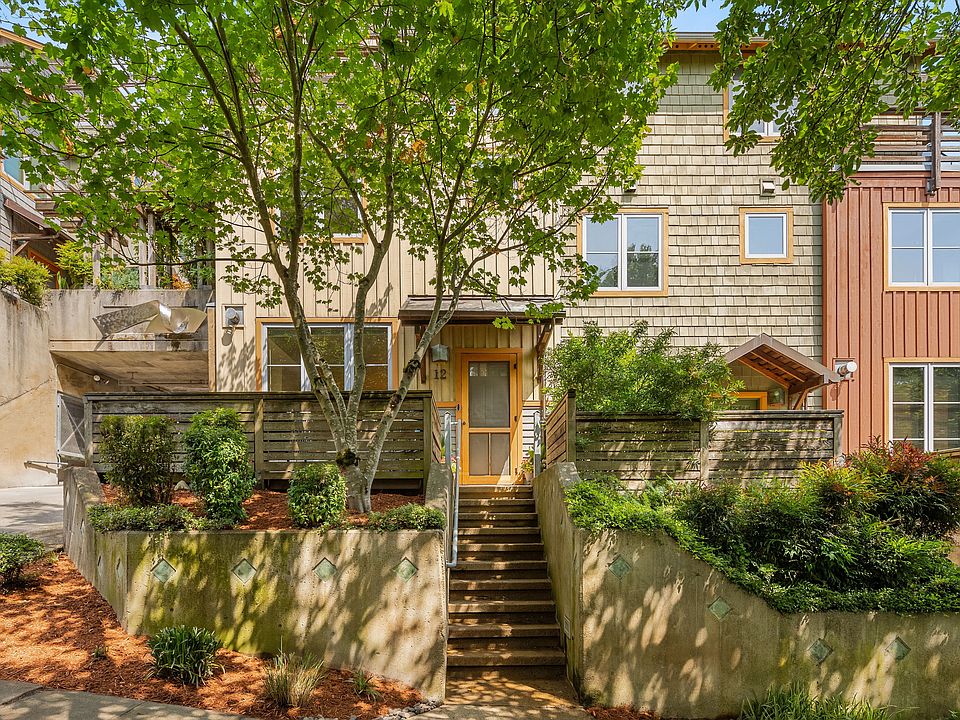 Stonewater #12 // Rarely available townhome in Stonewater Condominiums, an AIA Home of the Year-winning urban village of 12 residences designed by Johnston Architecture and crafted by Bill Parks. Maple floors and cabinets, wood-wrapped windows, and solid wood doors adorn the space, complemented by 10 ft ceilings. The gourmet kitchen features an easy entertaining arrangement and the top-floor owner's suite is a luxurious loft-style retreat, complete with a 5-piece bath, wool carpet, vaulted ceiling, and a spacious deck offering breathtaking westerly views. Gas heat, ductless A/C, and 2 parking spaces in a secure common garage provide convenience, with a walk score of 96 just steps away from all Fremont's amenities.