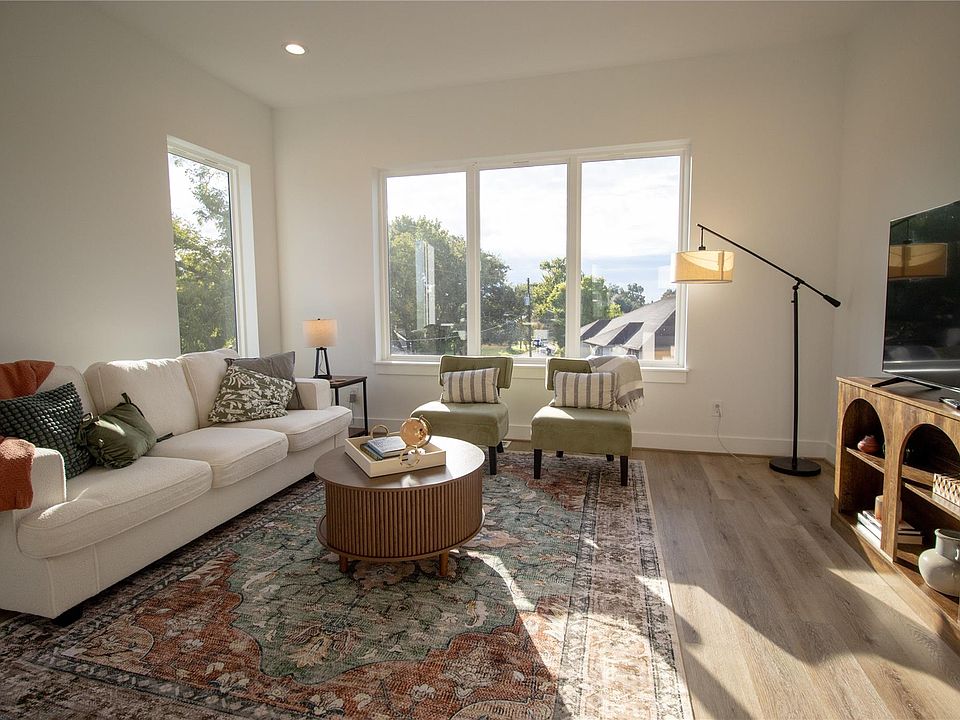 Come home to a feeling. Picture pulling into your private parking spot directly in front of your front door after a long day, stepping into a space that instantly exhales calm. Ten-foot ceilings create an open, airy volume that fills with the golden light of sunset pouring through 9-foot-wide, 6-foot-tall triple-pane windows. The kitchen's quartz counters, matte black fixtures make even a simple dinner feel intentional. Unwind with a glass of wine on your private rooftop patio, where the downtown skyline glows at dusk and fireworks light up the Fourth of July sky. Or relax in your fenced backyard, surrounded by the quiet hum of Northside Village's tree-lined streets. Every detail from the spa-style bath and in-unit washer/dryer to the efficient floor plan and modern lighting was designed to feel elevated yet effortless. Located just steps from the Moody Park Light Rail Station, Kennon Heights offers the freedom of urban connectivity with the comfort of home.