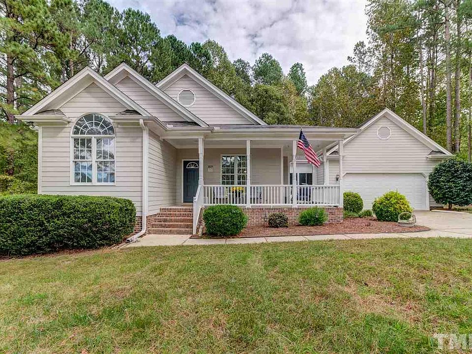 Custom built 3 bedroom/2 bath ranch home with rocking chair front porch on 1.49 acres! Open floor plan features a living room w soaring ceilings & gas log fireplace. Kitchen w plenty of cabinet/counter space, recessed lighting, large pantry & breakfast bar. Master suite features large walk in closet & walk in shower. Sunroom overlooks the deck and private, landscaped backyard. Oversized 2 car garage with workshop area & detached storage shed. New roof to be installed on 11/1!! Only 30 minutes to Raleigh!