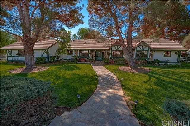Cozy single story located close to the center of Acton, just walking distance to the park, markets, and restaurants. This property offers all of the amenities you are looking for including paved road, county water and natural gas. Large master bedroom has a spacious walk in closet and a sliding door that leads to an entertainers patio w/built in BBQ and sink and extends the length of the house! There's a two-sided fireplace w/ gas logs that will warm both the family room and living room. The entryway leads you to a formal dining room connecting to the kitchen and a family dining area. The separate laundry room leads to the oversized 3-car garage which is privately located on the back of the floorplan. The 1.1 acre lot has amazing lush lawns and is gated and cross fenced and with plenty of room and easy access for an R/V or horse trailer. The horse facilities include 2 large tree shaded pastures/corrals, 2 double stalls w/ 3 sided shaders, and another single stall w/ 3 sided shader. There is also a Tack room, feed room, steel hay shelter and a lighted arena which affords you the ability to exercise your horse on your own property day or night. Also out back is Santa Barbara deluxe wood greenhouse, orangery greenhouse, potting shed, and 4 large enclosed raised vegetable beds. Other recent improvements include paid for solar panels, solar tube lighting, solar attic fan, a newer AC unit, water softener and reverse osmosis.