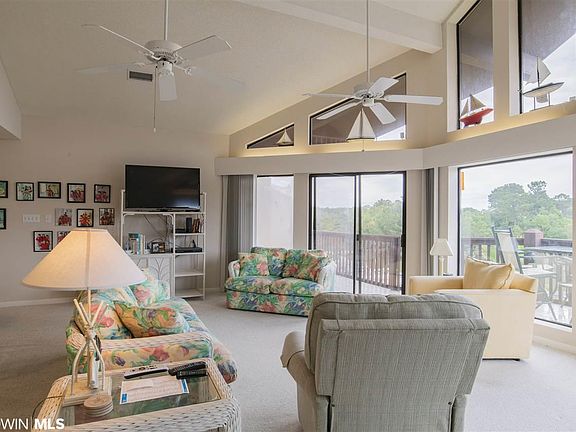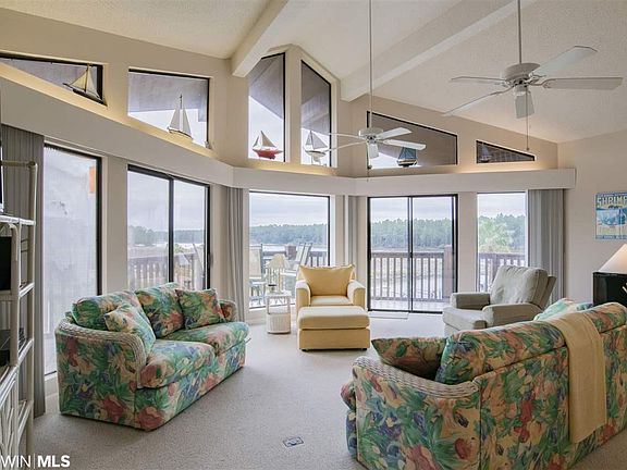 JUST REDUCED TO ALLOW FOR UPGRADES!! Beautiful Top Unit - Exquisite 4 Bedroom 2.5 Bath with beautiful open area. Vaulted ceilings, new plumbing and hot water heater. This unit overlooks marina with fantastic views of the Intracoastal Waterway leading into Bon Secour Bay, Mobile Bay, and Gulf of Mexico. Extra large storage facility with power. A MUST SEE One-of-A-Kind Condo in excellent condition. Ssigned boat slip #70 with 10,000 lb lift. Under unit parking to accommodate two cars, additional storage. The unit complex amenities include two salt water pools with a hot tub. One pool has a bay view and the other with a marina view.