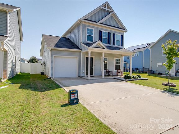 This 2020-built home combines modern living with energy efficiency, featuring solar panels for reduced energy costs.The open-concept layout on the main floor is ideal for today’s lifestyle. It features 3 spacious bedrooms, all located upstairs, and 2 baths. The primary suite includes a garden tub and shower combo for a relaxing retreat. The downstairs area boasts a bright, open living space connecting the kitchen, dining, and family room, with a conveniently placed laundry room, and a half bathroom as well. Step outside to a fenced backyard, perfect for outdoor gatherings around the firepit. The home also includes a one-car garage and is situated near I-485, making your commute a breeze.