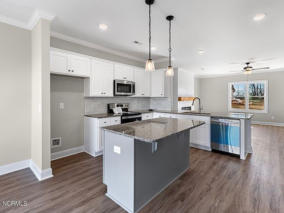 Custom Built RANCH PLAN! Luxury Vinyl HWD Style Flooring Throughout Main Living! Upgraded Lighting & Hardware Throughout! Kit: Granite CTops, Flat Panel Painted Cabinets, Peninsula & Center Island w/Breakfast Bar & Pendant Lights, Tile Backsplash, SS Appls Incl Smooth Top Range, MW & DW! Pantry w/Cstm Shelving! Open to Breakfast Area w/Slider to Rear Grililng Patio! Owner's Suite: Plush Carpet, Crown Molding, Ceiling Fan w/Light & Spacious WIC w/Cstm Wood Shelving! Owner's Bath: Dual Vanity & Walk in Shower! FamRm: Crown Molding, Linear Electric Fireplace w/Shiplap Accent Surround & Stained Mantle & Ceiling Fan! Laundry w/Custom Wall Cabinets!
