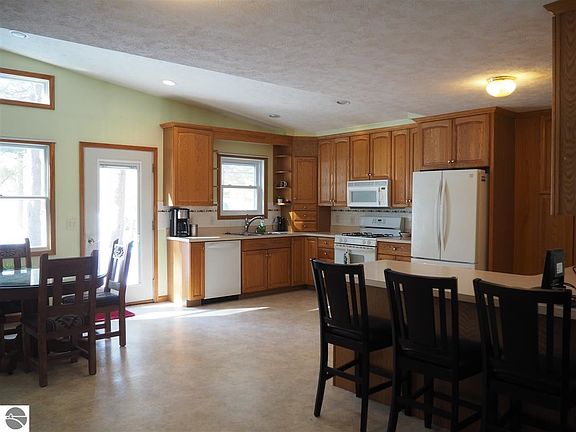Spacious 3 bedroom 2 bath ranch home beautifully nestled in the trees on 2.5 acres in Kingsley. Beautiful open kitchen features an eat up bar, plenty of cabinet space and a built in desk area. Dining area opens up to your private back deck and fenced yard. Living room with natural fireplace and 3 main floor bedrooms including a large master with walk in closet that has access to the back deck. Partially finished lower level with family room and additional space that could be finished off. Oversized 2 car garage, fenced yard and storage shed.