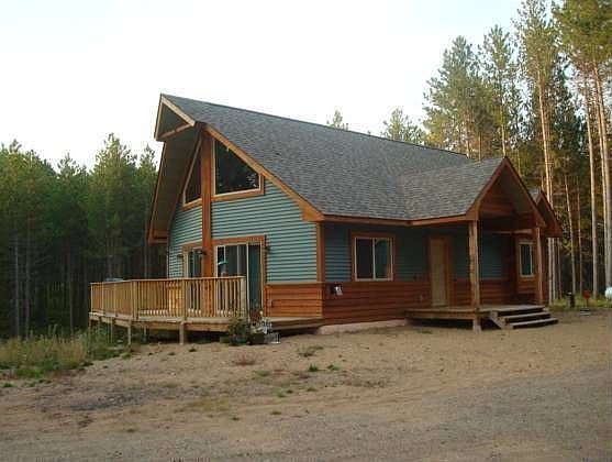 Down a private 1/4 mile driveway you will find this brand new cedar sided chalet style home on 7+ acres. Centrally located between Minocqua, Tomahawk and Rhinelander. Hickory hardwood floors, custom rustic alder cabinetry and home is accented with cherry. Upper level has loft with master bedroom suite. Features include cathedral beamed ceiling, free standing pellet stove, jacuzzi tub, pantry, appliances and cork flooring in bathroom and kitchen. Large deck around front and part of the back. F...