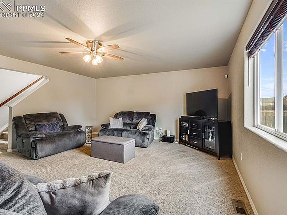UPDATED: New exterior paint has been completed on the home! Welcome to your new home! This beautiful Manchester floorplan by Challenger Homes is larger than life, boasting a fully finished basement offering you the ideal blend of space, functionality and comfort! Upon entry, a generous foyer welcomes you. To your left is an office with elegant French doors, adaptable to various functions such as a home office, gym, formal dining room, crafting space, or a cozy sitting area, the options are endless! The main level seamlessly connects a spacious living room, dining area, kitchen with a central island, and a walk-in pantry, fostering an ideal environment for hosting gatherings and entertaining. Upstairs, the second level features a large loft family room, an oversized primary suite with a 5 piece bathroom, offering a serene sanctuary and providing a private retreat. The second level is completed with 2 large bedrooms with walk-in closets, a full bathroom, and a laundry room for added convenience. The fully finished basement offers even more living space, featuring an additional family room, two bedrooms also with walk-in closets, a full bathroom, and abundant storage options, including a sizable storage room and an extra closet in the hallway. Centrally located near Peterson SFB, Schriever SFB and Fort Carson. This community features a fire station, park/playground, dog park, skateboard park, basketball courts, and neighborhood trails. This home is not just a place to live, but a place to thrive. Schedule your showing today and do not miss the opportunity to make it yours!