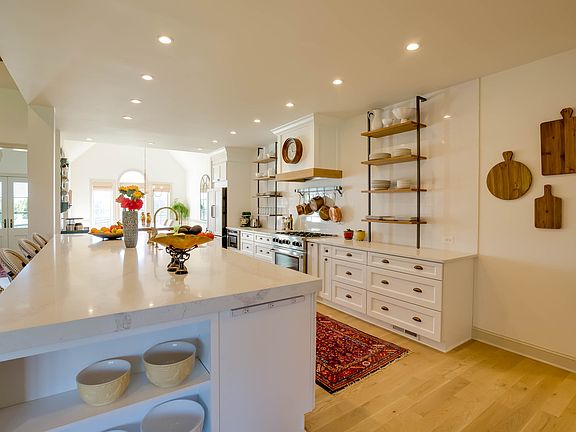 All Brick Home-Completely Renovated w/ Expert Craftsmanship. Main Level Master. AMAZING Kitchen-impeccable details incl custom made island w/ Cambria Quartz counter-top, Blue-Star Range, SS Appliances. Solid white oak floors run thruout, 24' floor to ceiling doors, panoramic views. In-law suite w/ full kitch can be converted to 4th Bedrm, newly finished walk-up basemt, 42' x 30' 3-car Gar, 3.03 ac