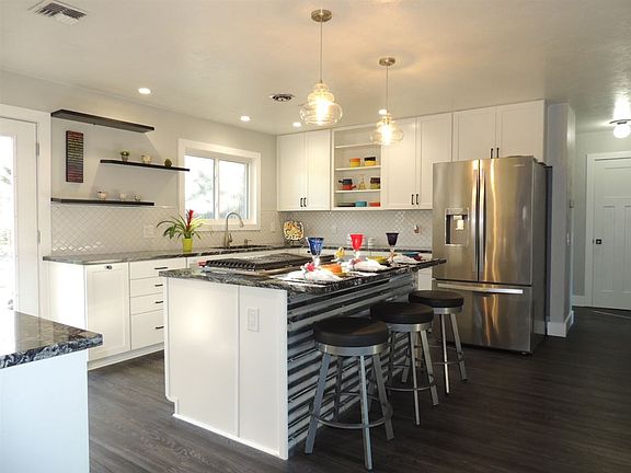 Accepted Offer with Contingencies. Move-in ready-Updated 2160 SF Single lvl, 3 bdrm w/bonus rm/4th bdrm, 1.5 bath 3.76 acres located minutes from town. Remodeled kitchen w/lg island cooktop w/seating/serving bar. New appliances, cabinets, stone countertops, contemporary tile backsplash, ebony woodgrain vinyl plank flrs. Lg dining rm w/built-ins, huge family rm. Fresh interior & exterior paint. New vinyl windows, drs & flrs. Basketball/tetherball court, chicken coop, feeder barn, seasonal creek. Usable pasture, fruit trees, room for RV.