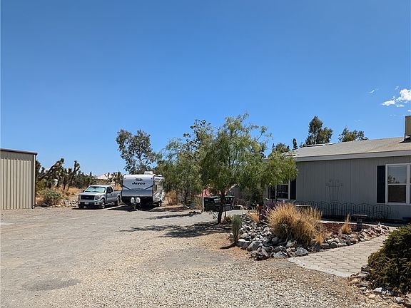 Welcome to your slice of Eden! Plenty of room to grow. The 1568 square foot manufactured home comes with 30 by 40 feet 1200 square foot permitted steel building with skylights to use as a garage/workshop/RV & EV parking with 30 amp and 50-amp outlets. It could also be a man cave or even an ADU! Added Value! Home's new septic system is installed! This home is inviting and turnkey, sunny and has a well-thought-out split floor plan it features a Great room/Family room. The bright and airy kitchen leads to the relaxing patio. There is new paint and light fixtures throughout, new carpet in Great Room and Guest Bedroom. Ceiling fans in all rooms. You will appreciate the tranquil setting, with unique Joshua tree Groves and mature trees. Enjoy the captivating surroundings as you relax in the hot tub, yes this home includes a year and a half old hot tub. Must see property! Amador Road is well maintained; property is fully fenced with three access gates and storage sheds the 30 amp and 50-amp outlets in the garage allow you to plug in your RV and level 2 electric car charger in addition to the 1200 square feet of storage there is a connex box with patio cover. Also a large, lofted shed and a small steel shed near access gate. Plus there's a dog run and a chicken coop. Whether you were looking for a family compound or investment potential this property has many answers to your quest. No HOA/land lease/MelloRoos/CDF fees!