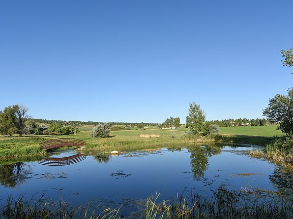 Amazing property on the edge of Spearfish. very clean and well cared for home on a large acreage. Open floor plan, great views in every direction, Pond ,design with tile and oak floors. With 28'x28' two-story addition with drive under garage. Property has its own well. . Covered patio, fenced yard. Large 40'x64' shop with cement floor and, 1/2 bath. large landscaped yard. The farm land is leased for two years, owners get percentage of what hay sells for each year and much more.