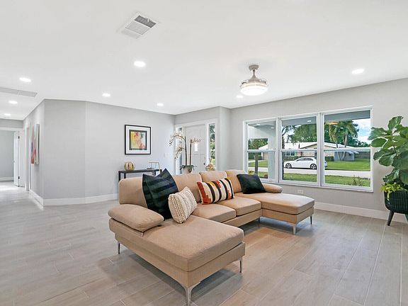 This CBS home has been beautifully renovated and includes 5br/2ba/1.5 car garage located in Palm Beach Gardens & has over 2600 total sq.ft. with new tile floors throughout, new kitchen cabinets, new stainless-steel appliances, center island with quartz counter tops, new bathrooms, high hat lighting, gorgeous lighting fixtures throughout, hurricane impact windows, new A/C unit, roof replaced 2007, large air conditioned Florida room, new garage door, painted inside & out. Room for a pool. This would make a great rental or Airbnb. No HOA! Near shopping, restaurants, schools, airport & beaches. A must see!