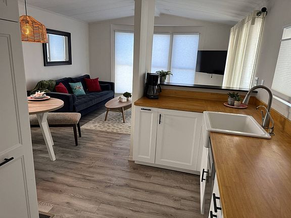55 + ADULT ACTIVE PARK ARIZONA WEST RV PARK 6825 E 32ND STREET, #150 YUMA AZ, 85365 ANNUAL LOT RENT $3,500 INCLUDES: WATER, SEWER AND TRASH Renovated 1 Bed / 1 Bath Manufactured Home - Fully Furnished 1984 Silvercrest • 14' x 40' Renovated in 2023 15' x 40' covered patio/parking 100-amp service Annual lot rent: $3,500 Window shade screens Interior Upgrades New roof (2023) New high-efficiency heat/AC heat pump New stainless steel appliances Fully renovated Ikea kitchen White shaker cabinets (soft-close) Butcher block countertops Farmhouse sink New washer & dryer Two pantries 36" refrigerator Tall hallway closet Dining area with built-in china cabinet Reverse osmosis (sink + ice maker) New window coverings LED lighting throughout + dimmer switches Smart thermostat LVP flooring throughout (except bedroom) Bedroom Brand-new king-sized bed Large wardrobe with shelving