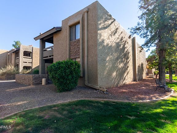 Desirably located in gated community of Arcadia Residences, this 1 bed/1 bath updated, adorable end unit, ground floor condo has the convenience of a stacked W/D inside. This delightful home boasts a custom paint scheme, a new HVAC unit which was installed in 2023 & a brand new microwave that was just installed in Dec. 2024. Comes with 1 assigned, covered parking spot. Enjoy the outstanding community amenities including a heated pool & spa, clubhouse, workout room, business center, theater, billiards room, community kitchen & BBQs. Convenient walking or biking to all the great destinations nearby including the Global Ambassador, Biltmore Fashion Park, Old Town Scottsdale & all the popular local restaurants. Mins from airport & 51.