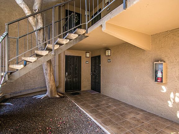 The Professionals Location. A Gated Community - Arcadia Residences is located minutes from downtown, the airport, shopping, dining and entertainment. This two bedroom two bathroom condo is on the first floor, has newer tile in the traffic areas, kitchen, living room and bathrooms., carpet in the bedrooms. Refrigerator, Full Size Stacked Washer/Dryer included. A beautiful custom built in cabinet for displaying and storage is a plus in any condo atmosphere. HOA includes Water, Hot Water, Garbage Collection, Club House, Community Pool and Spa. Relax and put your feet up on the covered patio. Interested? Contact your Realtor for a private showing. Dish TV Antenna does not convey.