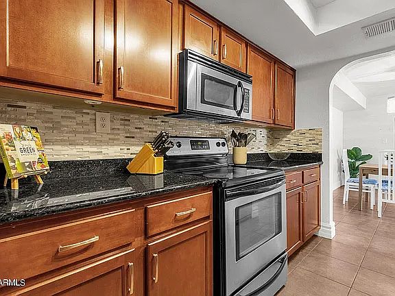 Fully furnished, Dual primary suite condo in the heart of highly desirable Arcadia, nestled conveniently between Biltmore and Old Town Scottsdale! This unit has modern updates and beautiful views of Piestewa Peak to the north and Camelback Mountain to the east. Updates include bright, premium laminate flooring in living room, contemporary sinks and fixtures in bathrooms, cherry cabinets and modern backsplash in kitchen, and granite countertops throughout. This gated community features pool, spa, workout facility, media room and clubhouse/rec room. Walk to amazing restaurants like Chelsea's Kitchen, North, and CRUjiente Tacos, take a short drive to excellent shopping and entertainment, or bike down the canal where you can reach numerous hiking trails along the way.