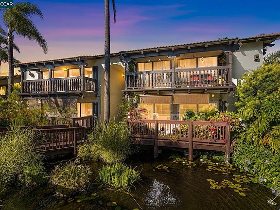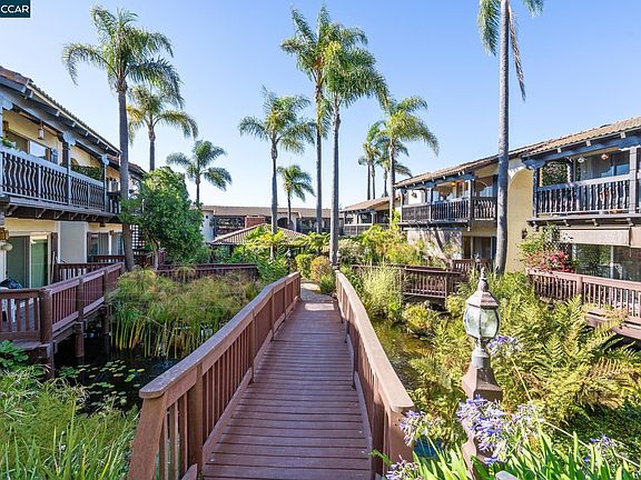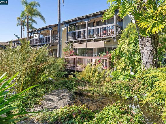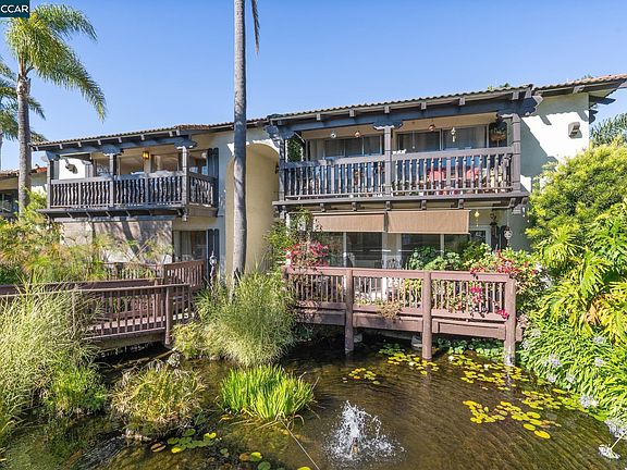 A tropical oasis in Oakland? The best of all worlds converge in this 2 BR/2BA condo that overlooks the green hills of Oakland on one side and then the ecosystem of fountains, koi ponds, palm trees, water lilies, blue agapanthus flowers, and turtles on the other. This lush, quiet, established community feels like vacation, yet the amenities of Montclair and the Laurel District, plus easy freeway access, make this a tranquil haven to call home. Enter the complex under a flower-covered arch, cross a wooden bridge over the pond, and ascend to the front door and adjacent deck. The two sizable bedrooms both have sweeping views of the hills, oversized closets with built-ins, and their own bathrooms. The kitchen was recently remodeled with custom dark oak cabinets, high-end appliances, new counter tops, and a dreamy farmhouse sink. The focal point of the floor plan though has to be the spacious deck that runs the length of the dining and living rooms with large glass doors along the expanse. Spending time out there allows you to soak in the sound of the water, hear the birds, enjoy a sunset, and feel the lushness of the mature plantings that surround. This place is one of a kind.