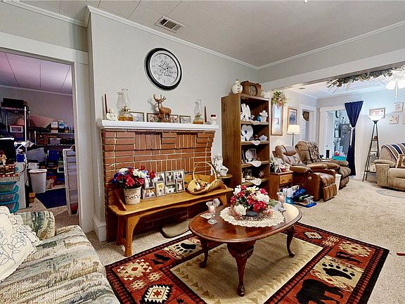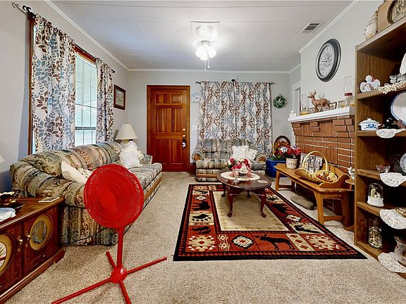 Imagine coming home to this classic Southern bungalow blending 1920s charm with modern comfort. Step inside to a welcoming living room that feels instantly inviting, with a split layout offering flexibility for your lifestyle. Two bedrooms are situated just off the main living space—connected by a doorway that makes them perfect for guests, a home office, or a creative nook. One bedroom also connects directly to the bathroom for added convenience. The kitchen offers ample cabinet space and a dining area that overlooks sliding glass doors leading to the backyard—ideal for enjoying your morning coffee or evening gatherings. A small washroom with shelving connects the dining area to the spacious primary suite, complete with an ensuite bath and large walk-in closet. Outside, the expansive backyard is ready for play, gardening, or simply relaxing under the open sky. A large storage building and a driveway easement from the side road add extra practicality. Enjoy evenings on the bungalow-style front porch or pull right into your single-car carport for easy access. Built in 1924 with an addition added in 2008, this home perfectly balances character, comfort, and space to make it truly your own.