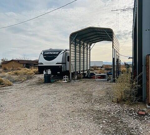 5 acres located in Fallon with a shop. Home is 1152 square feet with an open floor plan, 3 bedrooms, 1 bath and a sun room. Home also features an attached carport. The metal shop is 1200 square feet and an apartment has been started. Also on the property is an RV cover 2 storage sheds, fenced back yard and property is fenced. The 3rd bedroom in the homes does not have a closet.