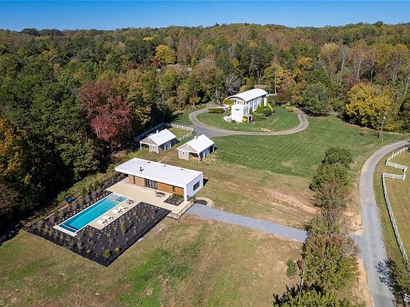 Discover this exceptional property featuring a contemporary home designed by an award-winning architect, complemented by 2 barns, a brand-new pool house and pool completed in 2023. This horse farm offers privacy and space while being a short distance from in-town amenities. The architectural excellence can be seen from the open-concept layout with expansive windows that flood the interior with natural light while offering breathtaking views of the lake, pond, barns and pastures. The lake or pond can be viewed from every window! Modern updates include the kitchen that was remodeled and expanded, and the primary suite with viewing porch that enhance functionality and style. Upstairs includes 3 additional bedrooms with 2nd laundry and office. The basement is an ideal theatre room and recreation area with corked flooring. This sale includes four parcels- 3841, 3871, 3825, and 3859 Mindona Drive offering ample space and privacy. Please refer to the supplemental sheet for additional details.
