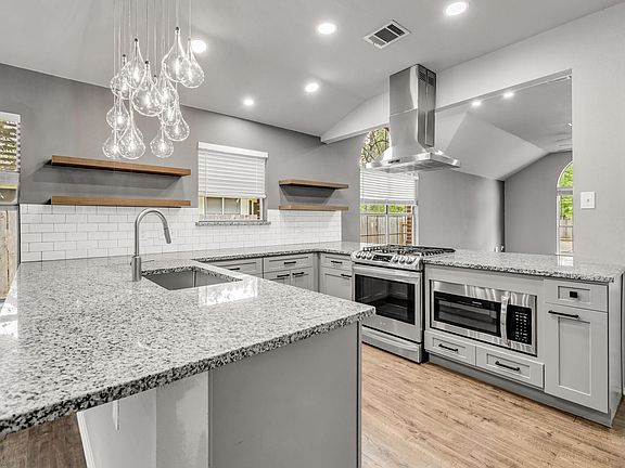 UPDATED AND MOVE-IN READY! This wonderfully updated 4 bed/2 bath home in Wells Branch has been beautifully updated and is ready for you to make it yours! Located in Wells Branch, 10 minutes to the Domain and the Apple Campus, and 20 minutes to downtown Austin. This light, bright, and open floor plan is perfect for entertaining family and friends for the upcoming holidays. The gorgeous gourmet kitchen has 2 granite peninsula bars with bubble pendant lights and stainless steel appliances. The back den features a wood-burning fireplace and opens onto the huge backyard. The master retreat is large and has a stunningly updated master bath. Walking distance to the elementary school, dog park, Mill Pond and neighborhood pool.