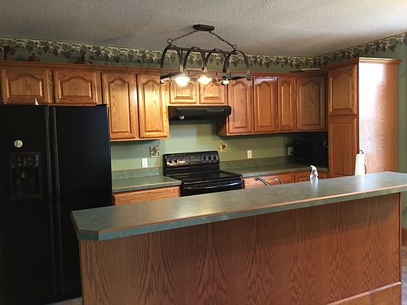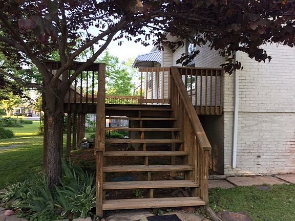 Updated kitchen, enclosed front porch, nice back deck, 2 car detached garage with no door, storage building, circle drive, 1 acre lot, antique fireplace in master bedroom, original doors, a lot of house for the money.