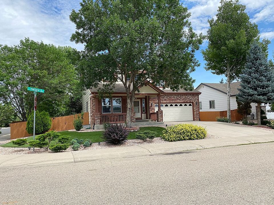 Don’t miss this incredibly well-maintained 4 bd/ 2.5 ba gem located on a corner lot. Complete with a professionally landscaped outdoor area and idyllic backyard with custom lighting in wonderful Loveland location. The charming brick exterior and shady front yard is accentuated by tasteful landscaping, leading into the beautiful foyer with a formal sitting area. Next you're lead to the dining area to your left. Gentle natural light permeates throughout the home, which flows onward to the wonderful kitchen — the space is fully equipped with ample counter space and center island, white appliances, and a dining nook for informal meals. The primary living area attaches from the kitchen, providing you with the ultimate area to sit and relax; the plush carpeting and warm glow of the fireplace will keep you cozy throughout the Colorado winters. Head upstairs to rest in the primary bedroom; you’ll love the large picture windows, vaulted ceilings and archway leading to the ensuite bathroom, complete with a glass enclosed shower, dual sink vanities and large walk-in closet. The secondary bedrooms are spacious and accommodating, perfect for hosting guests, and share a full hallway bathroom. The south-facing home ensures quick snow melt- and greater efficiency with all the natural light! Out back, enjoy the Trex deck which peers out over the grassy backyard; you can sit and relax next to the koi pond and rock garden — find your sense of calm in the privacy of your own backyard. Other features: Full unfinished basement with rough-in for future expansion. 240V outlet in the garage for EV charging. Loft can be used as an office. 10x 8 ft shed with electricity in the backyard. Nearby: a park across the street, Boedecker Lake, Mariana Butte Golf Course, TPC Colorado, Fairgrounds Park, local shopping and dining, easy access to Rte. 287 and I-25; short commute to Fort Collins or Longmont. Buyer to verify all information.