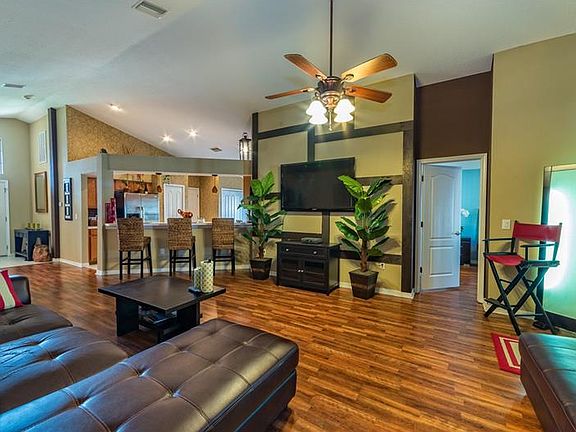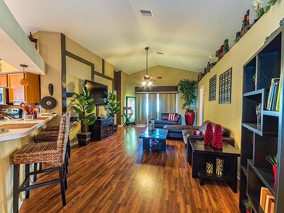 Come see this beautiful 4 bedroom 3 bath home close to restaurants, entertaining, a shopping mall, and I-4 conveniently located between Tampa and Orlando. The home features a split open floorplan, a separate bedroom with it's own bath for guests and a Jack and Jill bath for the 3rd and 4th bedrooms-perfect for a growing family. The large master suite has its own access to the lanai, as well as a large walk-in closet. The master bath includes a double vanity and a garden tub. Enjoy the large kitchen with stainless appliances, backsplash, plenty of storage, a breakfast bar and a nook. There is a separate dining room for entertaining and holiday dinners. The large family room is great for family time and has spacious high ceilings. Laminate flooring has been installed in the majority of the home. The property sits on a large corner lot with a vinyl fence, perfect for pets. This house has so much to offer, you will not be disappointed. Call today for a private showing!