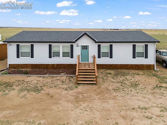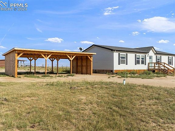 Home on the Range! This well-kept, Gated and Fenced, 40 acre Horse Property exudes Pikes Peak and Mountain Vista Views. With New Carpet throughout the open-space concept, the living room, kitchen and dining nook greet you with a light and bright feel. The kitchen features Newer Samsung Appliances, 220V, ample countertop and cabinet space with room for a kitchen island, and flows into the dining nook. Offering 4 bedrooms and 2 full bathrooms; the Primary bedroom has an en-suite bathroom and walk-in closet, the three additional bedrooms on the other end of the home share a well appointed full bathroom in the hall. While taking in the wide open spaces: the property boats an oversized workshop measuring 30 x 40 feet with a 10 x 10 foot door, RV parking, 3 Car Carport, Horse Stable and stall, and a separate fenced in dog run in the back of the home. The property is zoned A-35 and there are no covenants. The well is a domestic well with a newer pump and pressure tank installed in 2018. The septic system is oversized with two tanks: 1000 gallon and 1500 gallons. Find your rest and relaxation on the range. Schedule today for a private showing!