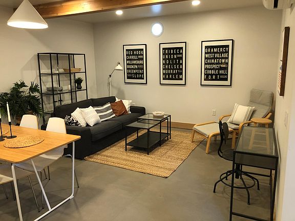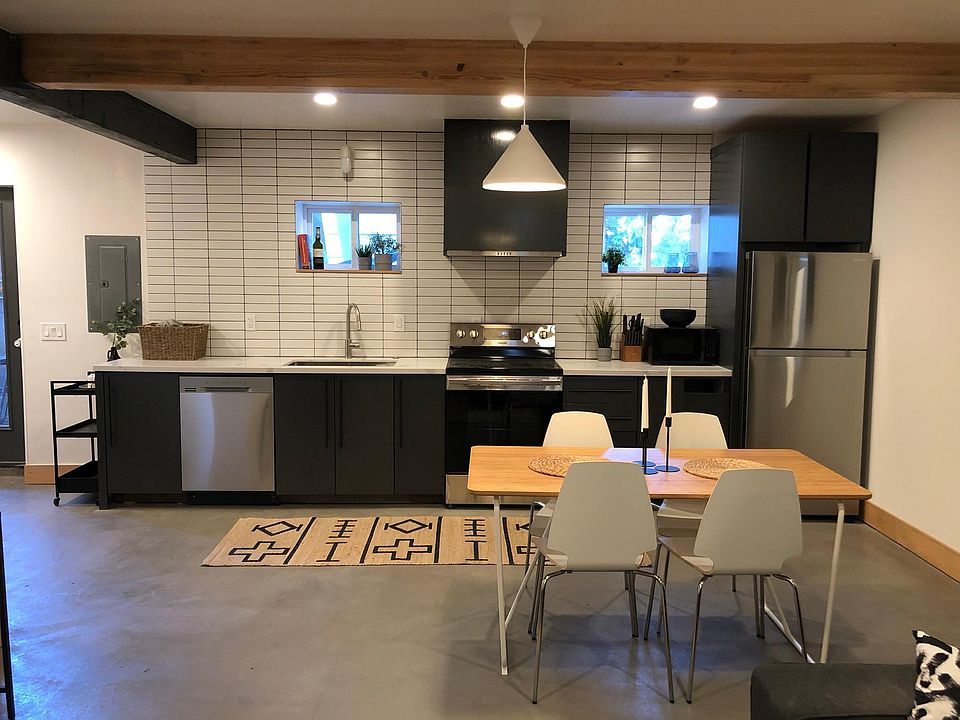 Beautifully crafted bright 800sf daylight basement apartment, 2 bedroom 1 bath. Modern Scandinavian architecture with custom design and stainless steel Samsung appliances. Gorgeous spa like bathroom with large custom tiled walk in shower and floating vanity. Solid hemlock wood doors & trim provide a warm feel next to the high end quartz counters and polished concrete floors. Private entrance & driveway with room for up to 2 cars and free on street parking. Private fenced outdoor space approx. 12x15. Heating and air conditioning and unlimited hot water (tankless water heater). Pet friendly. Newly built structure in 2015 located across from winter haven park and elementary on a quaint street in the Brooklyn neighbor. Short walking distance to Max Orange Line. (Dog friendly Winterhaven park) 3 minute drive to Ross Island Bridge and short drive to most major freeways (I-5, I-84, I-405, 99E) Located within 5 miles of 6 major hospitals and close to OHSU. 8 minute drive to south waterfront and OSHU tram and 9 minute drive to OHSU on Marquam Hill. EV charging available. $1990 rent includes. Includes private yard, driveway parking. Small pets allowed. No smoking.