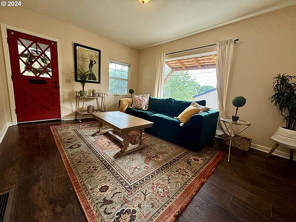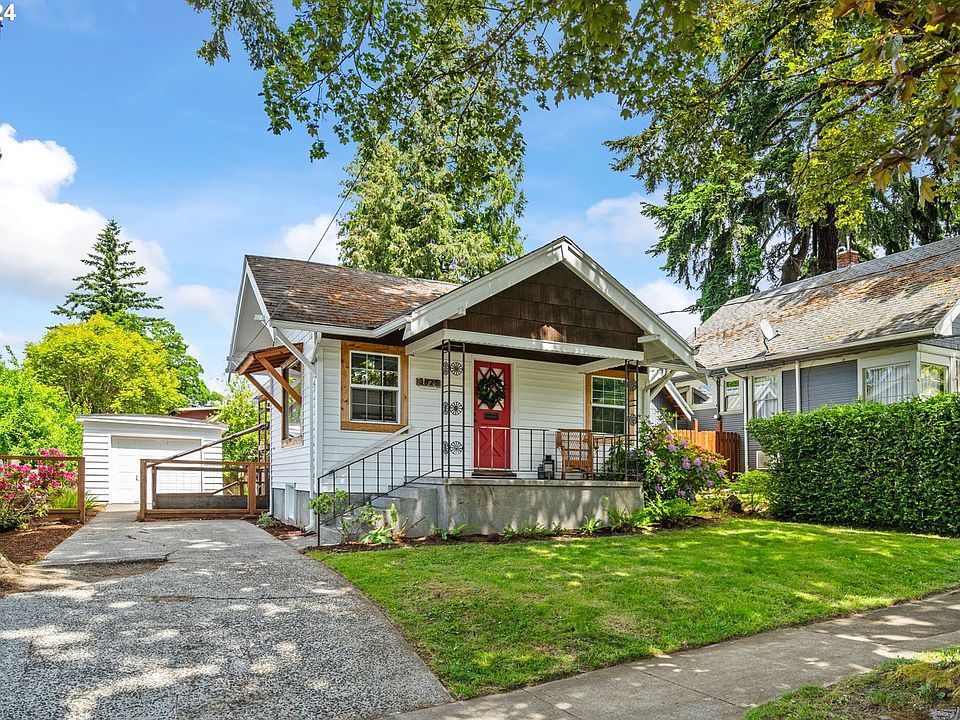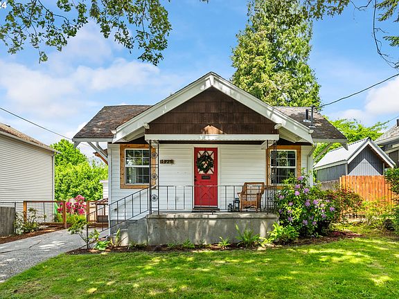 Nestled on the border of the vibrant Reed and Woodstock neighborhoods, this one-of-a-kind bungalow boasts a quirky charm and unbeatable central location. Just a short distance to Trader Joe's, the beautifully preserved wildlife habitat at Reed College Canyon, and countless stores and restaurants, this home offers the best of city convenience and natural beauty. Step inside to discover natural light streaming through the large windows in the front room, laminate and vinyl floors throughout the main floor, and a handy pantry in the dining room. The flexible landing area at the rear of the home is perfect for an office, yoga nook, mini library, guest room, or whatever your heart desires. The possibilities are endless! The expansive back and side yards with raised garden beds present a blank canvas ready to become your personal oasis. Cat lovers will adore the huge catio, which can easily be removed if you're more of a dog person. The giant basement offers limitless potential for storage, a hangout area, additional bedrooms, a game room or in-home movie theater. Plus, enjoy easy access to public transportation, making your commute a breeze. Don't miss the opportunity to own this charming bungalow with so much to offer. Schedule a viewing today and imagine your life in this wonderful home! [Home Energy Score = 5. HES Report at https://rpt.greenbuildingregistry.com/hes/OR10194963]