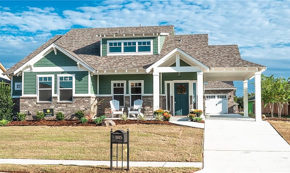 Come see this stunning Move-In Ready Craftsman home in the sought-after Town Square community! Our Mitchell plan is full of historical charm and curb appeal, starting with a large front porch, a porte-cochere, and a garage that’s hidden from the street. Everyone loves the handy mud bench in the entry which is great for kids' backpacks and organization. French Doors lead into a cozy study that is private by itself in front of the home. The spacious dining room leads right into the living room with a stone fireplace and vaulted ceiling featuring beams. You won’t want to miss out on this master suite with double vanity, large soaker tub, and spa shower. The large vaulted back patio and fully fenced yard will be perfect for backyard get-togethers! Town Square is Edmond's historically inspired community featuring Town Square Residents Club, a resort-style pool, fitness center, youth rec center, playground, wooded green belt, and a pond with a fishing dock.