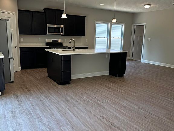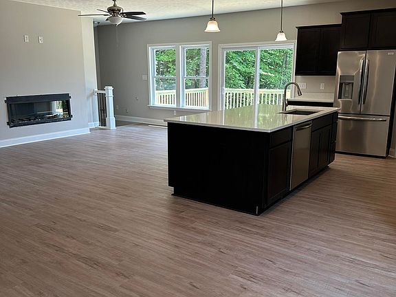 Modified 1810 floorplan over finished basement. Customized and upgraded throughout. Upgrades include increase of footprint, additional windows, 3 car garage, quartz countertops in kitchen and baths, LVP flooring throughout with exception of upgraded carpet in the main level bedrooms and tile in the laundry/mud room and baths, 9' ceilings on both levels, plumbing and lighting fixtures, additional lighting, increased deck size, increased patio off lower level sliding door, increased concrete driveway with turn around, double hung windows, doors, appliance package, siding and stone.