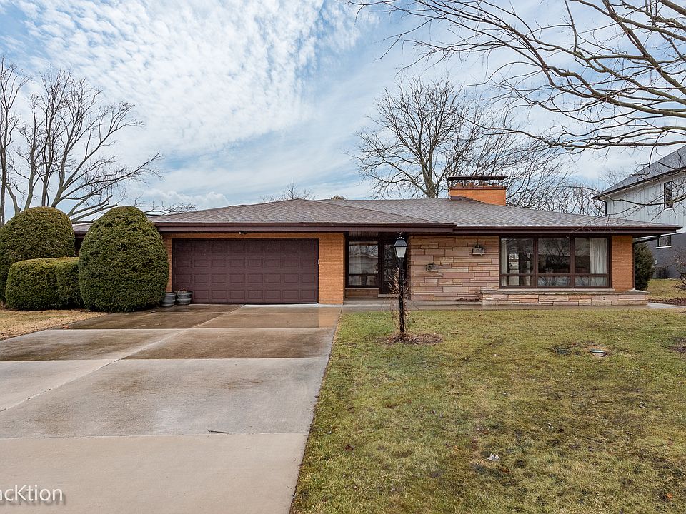 Charming Mid-Century Modern Ranch with Vintage Appeal! Step into timeless style with this expansive 3 bedroom, 2.5 bath mid-century modern ranch! Nestled on a spacious lot, this home boasts original vintage details alongside spacious floor plan blending retro charm and warmth throughout. The living and dining area feature statement stone and brick fireplaces, perfect for cozy evenings. The original hardwood floors and wood-paneled accent walls add warmth and character throughout.The kitchen showcases ample opportunities for your personal touches with plenty of room to redesign. Three generously sized bedrooms offer peaceful retreats, while the primary suite includes an en-suite bath with period-appropriate details. Outside, the lush backyard and three season sunroom provide an inviting space for entertaining or relaxing under the stars. A two-car garage and ample storage complete this perfect gem. Full basement with entertainment and bar area - and another brick fireplace, too! Located in a desirable neighborhood with easy access to shopping, dining, and parks, this mid-century modern masterpiece is ready to be your next home. Don't miss the chance to own a piece of architectural history! Award winning schools. Close to parks, shopping, & expressways.