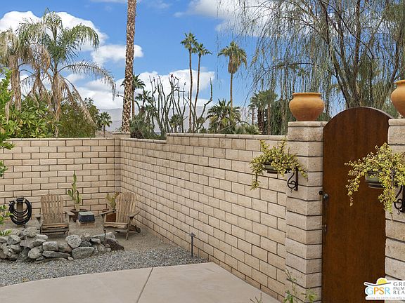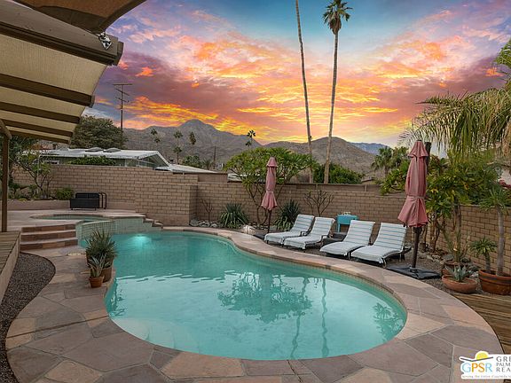 This is the one you've been waiting for! Welcome to your dream home in the upper Cathedral City Cove, where stunning mountain views, tranquility, and convenience converge. This remodeled 3-bedroom, 2-bathroom gem with OWNED SOLAR and gorgeous pool and multiple outdoor spaces is a true desert sanctuary, blending mid-century charm with modern upgrades. Enter the open-concept living space, featuring beamed ceilings, large windows, and a cozy fireplace. The newly-remodeled kitchen boasts quartz countertops, stainless steel appliances, a large island, custom lighting, and abundant storage. Adjacent is a bright dining area with garden and pool views, plus versatile extra space for a breakfast nook or office. The primary bedroom retreat includes an en-suite bath and a separate room ideal for yoga, fitness, or relaxation. Two additional bedrooms are perfect for guests or a home office. A second remodeled bath features a walk-in shower, and the separate laundry/utility room adds convenience and storage options. Step outside to your private oasis, complete with a sparkling pool, spa, and lush landscaping, including fruit trees. The expansive patio is perfect for entertaining or relaxing, offering privacy and safety with fully walled grounds. Additionally, the large lot also includes additional outdoor storage including a storage shed! Extensive upgrades to the home include new flooring, appliances, indoor and outdoor paint, refreshed landscaping, lighting and lots more. Plus, with fully-owned solar and energy-efficient features like dual-pane windows, you'll enjoy comfort and low energy costs. Located in the upper Cove, known for quiet streets, artistic vibes, and nearby hiking trails, this home is just minutes from world-class dining, shopping, and entertainment. Perfect as a full-time residence, vacation getaway, or investment property, this home offers the best of desert living.