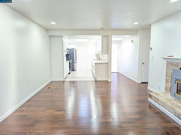 This charming 2-bed, 2-bath home with a 2-car garage offers the perfect blend of modern living, style, and convenience. Freshly painted inside and out, this home welcomes you with a bright and airy ambiance. The upgraded, chef-inspired kitchen is a true highlight, featuring high-end finishes and recessed lighting throughout, creating a sleek, contemporary atmosphere. Natural light floods the home through dual-pane windows with built-in blinds, while the stunning engineered hardwood flooring adds both elegance and durability. Enjoy peace of mind with a roof that's only 6 years old, and benefit from energy efficiency thanks to 5.04KW solar system with NEM2, helping reduce PG&E costs. The private backyard offers a tranquil retreat, while the spacious front yard is perfect for outdoor enjoyment with many fruit trees. Low HOA fees with access to the community swimming pool, offering a fantastic place to unwind. Top-rated schools are just a short walk away, making this an ideal location for families. Commuters will love the proximity to BART, ACE and key amenities like grocery stores (Whole Foods) — everything you need is just minutes away. Seize the opportunity to own this beautiful home in one of the most sought-after locations. Make your dream of homeownership a reality!